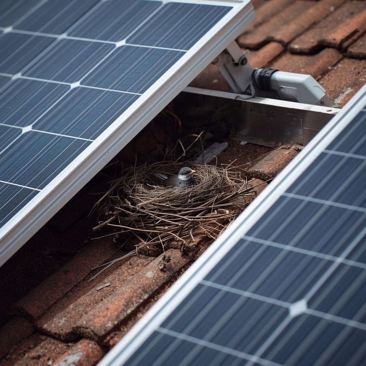 Solar panels create a warm, sheltered space that is perfect for pigeons and other birds to build nests. Unfortunately, these nests can cause debris buildup, roof damage, and potential electrical hazards.